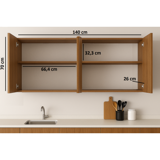 140LIK ATLAS ÇAM ÜST MODÜL, MUTFAK DOLABI, ÇOK AMAÇLI DOLAP, KİLER DOLABI